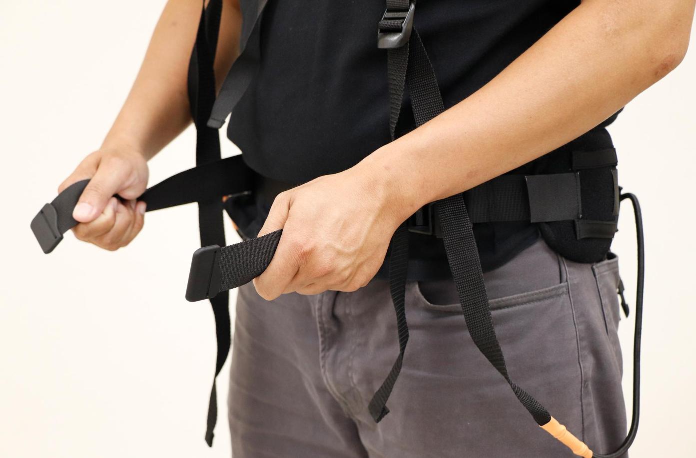 前傾姿勢的時候產品會產生反力效應,支撐腰部輔助前傾姿勢。